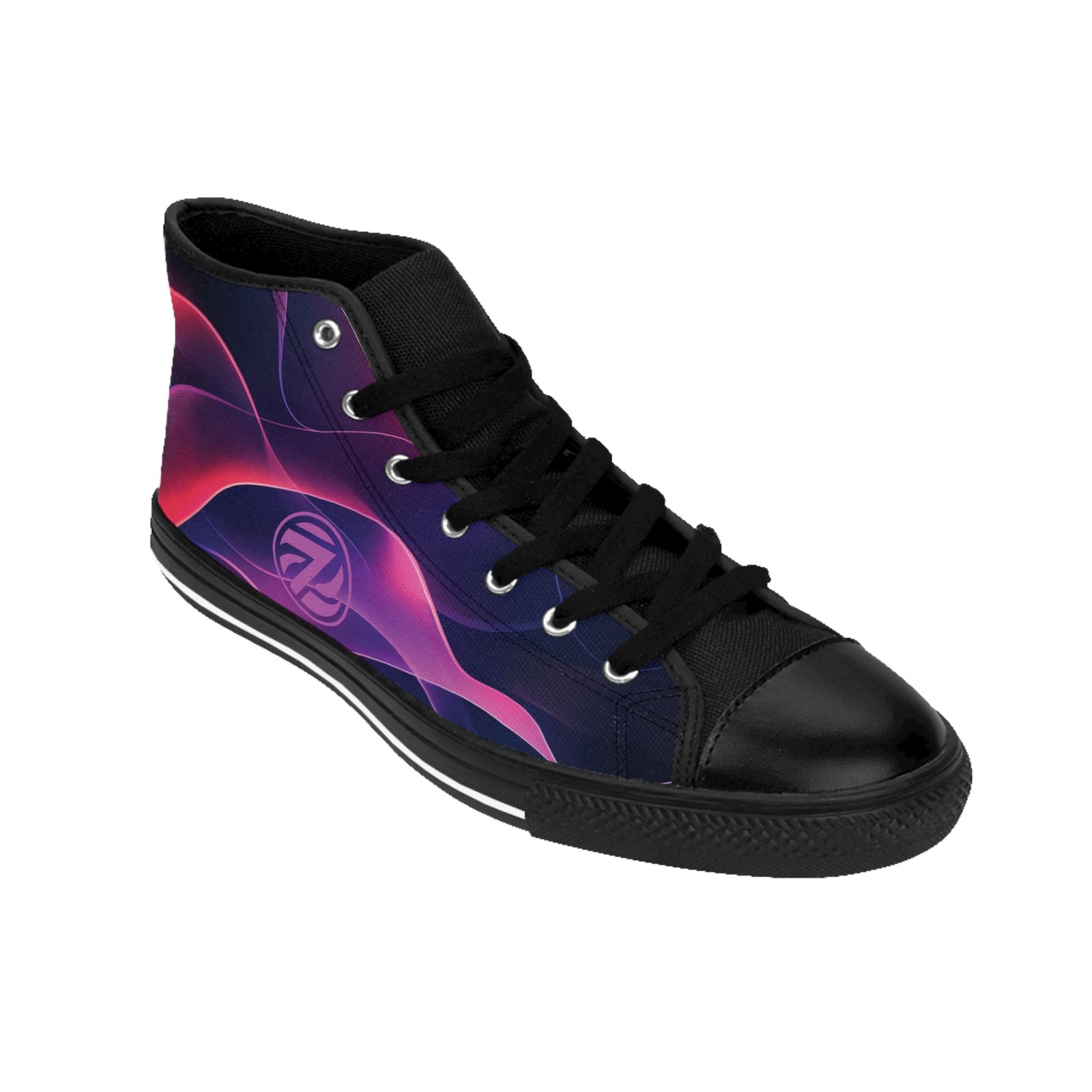 Step into the energy of the night with the Zerras Midnight Pulse High Tops. Featuring a bold, wave-like design in deep purples and electric pinks, these kicks bring motion to your style—whether you’re in the crowd or on the move. The sleek black sole, toe, and laces give them a grounded edge, while the custom Z logo adds that signature Zerras touch. Built for all-day wear with a durable canvas upper and high-traction sole, this pair doesn’t just make a statement—it starts the conversation.